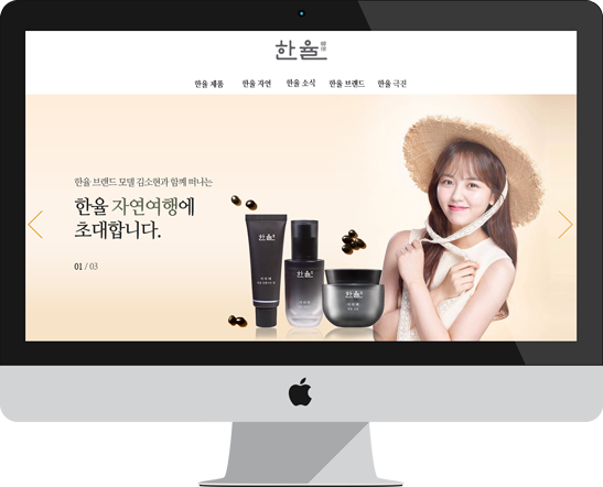MISSION천연성분의 화장품이 더 각광받는 시대에 자연유래된 한율제품을 강조하여 웹상에서 브랜드의 핵심가치가 보다 더 잘 전달되도록 리뉴얼하였습니다. 또한 기존의 다양한 컨텐츠를 트랜디하게 배치하고 메뉴를 비롯한 웹 상단의 심미성을 좀 더 강화하여 한율의 아름다움을 시각화하였습니다. 마지막으로 세부페이지를 클릭해야 확인할 수 있었던 내용들을 메인에 정리하여 소비자에게 더욱 구매욕구를 일으킬 수 있도록 디자인하였습니다.